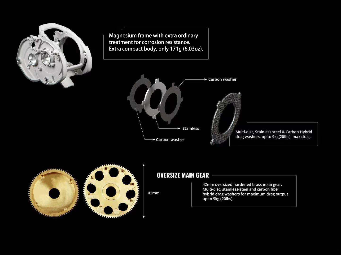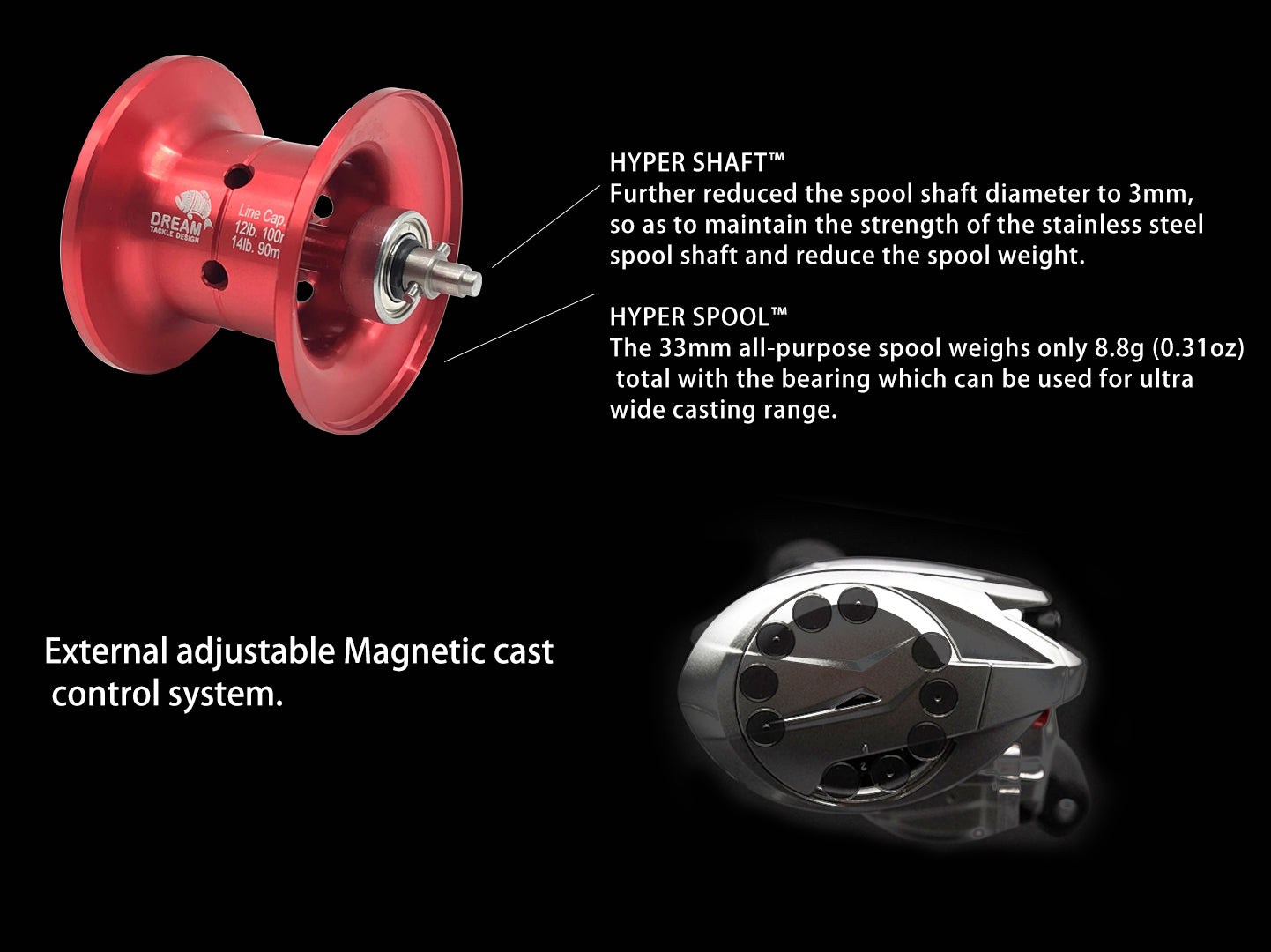 The brand-new Formula D low-profile reel is developed with the latest technology by Dream Tackle Design®. The main body frame is built by magnesium alloy construction for ultimate strength and lightweight use. At only 171g (6.03oz), the Formula D series reel is an all-round hexagonal player in all dimensions.