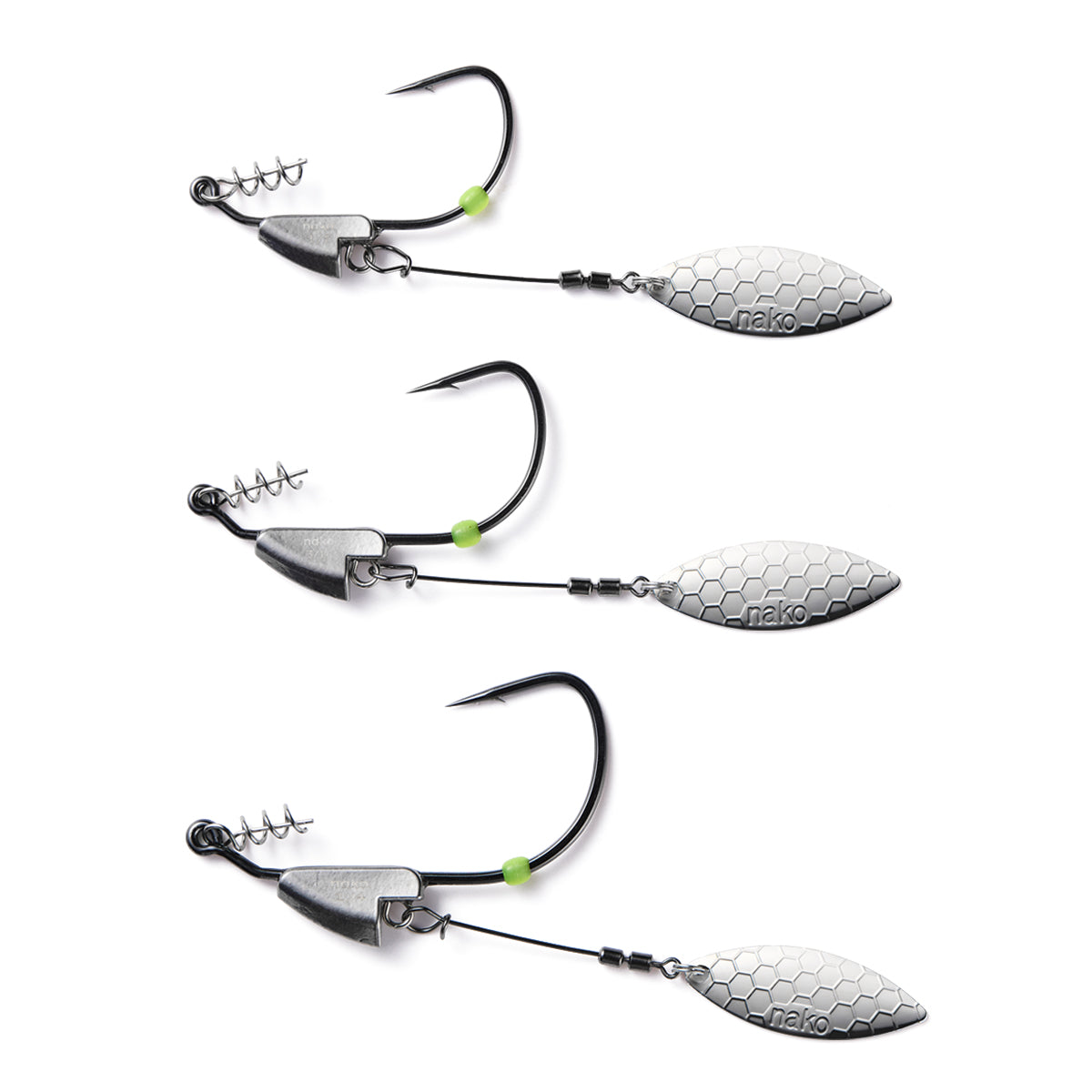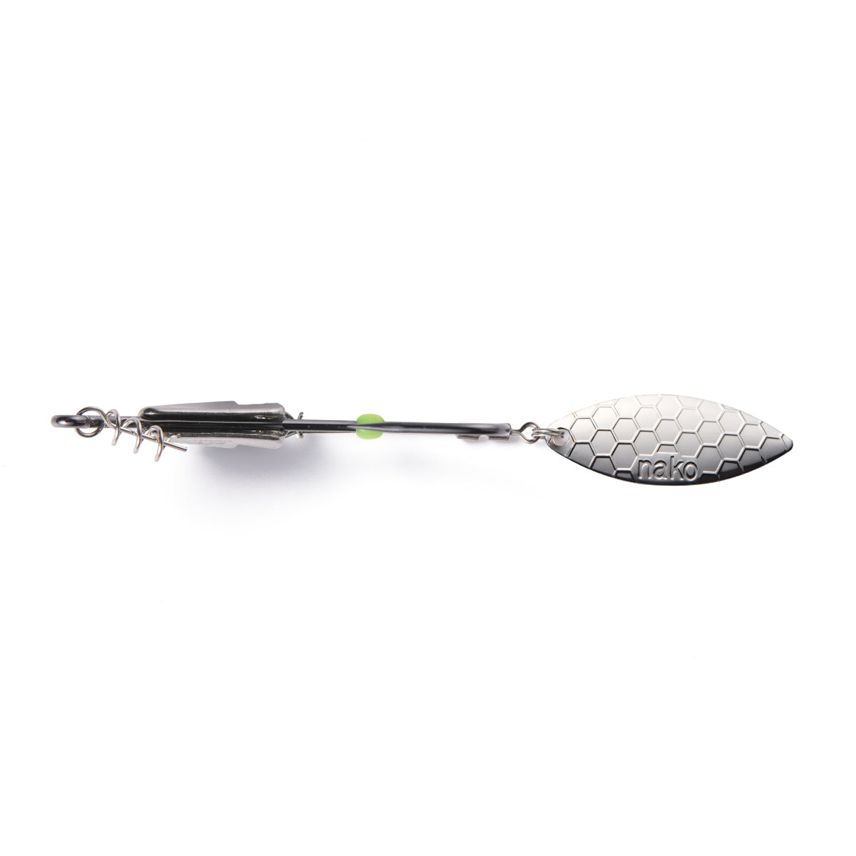 High Speed Willow Spinner - Equipped with a honeycomb-textured blade and a high-speed swivel for instant rotation. Delivers maximum flash and vibration even on the slowest retrieves.